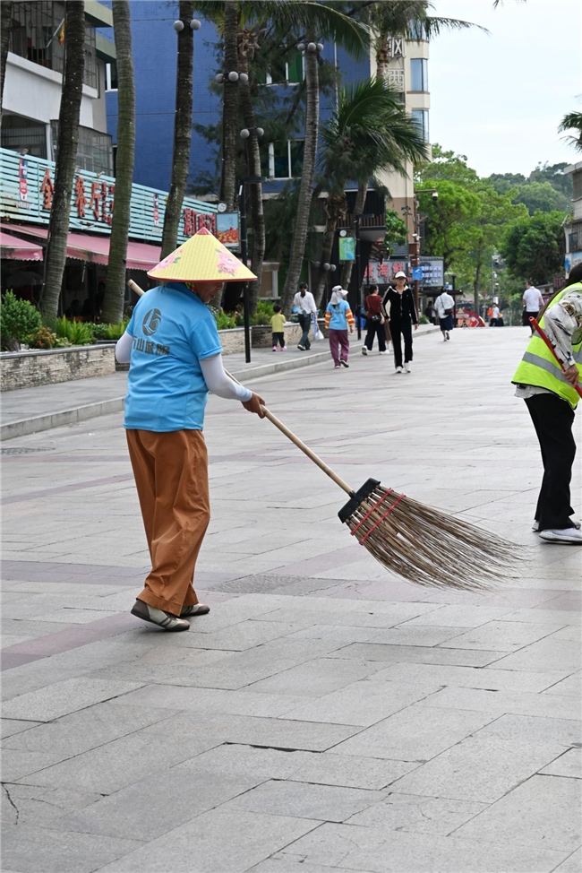 作为珠三角热门滨海旅游岛,外伶仃岛因 “水清、石奇、滩美” 吸引大量游客,但海鲜餐饮、旅游包装等特色垃圾也加重了环卫工作负担。活动现场,“分拣环保计划” 与 “清扫挑战赛” 两大互动环节人气十足:参与者在环岛广场捡拾垃圾并准确分类投放,亲身感受环卫工人日常工作的辛劳;在划定区域内,大家手持工具在规定时间内清扫落叶杂物,直观体验环卫作业的高效与不易。现场还设置绿色帐篷礼品领取处,参与者完成体验后可领取保温杯、环保袋、洗衣液等实用奖品,在趣味互动中提升垃圾分类知晓率与参与度。