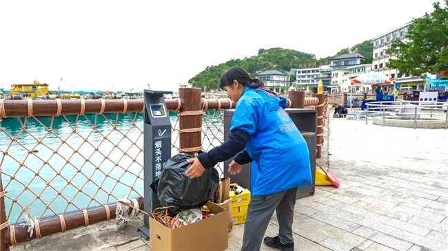 作为活动的核心亮点,“红色先锋护海岛” 环节充分彰显党建引领作用。党员志愿者们带头示范,手持工具拾捡广场及周边区域的散落垃圾,现场展示垃圾识别、分类打包的标准流程,随后将分类后的垃圾转运至指定处理点。在党员的带动下,不少居民和游客主动加入,大家分工协作、默契配合,用实际行动守护海岛洁净,让 “垃圾分类党员先行” 的理念深入人心。